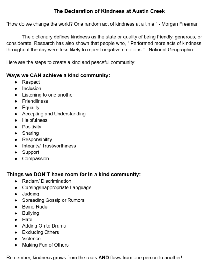 Whereas, we acknowledge that strong, positive relationships are grounded in kindness; and